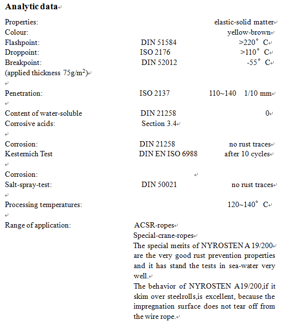 Preservation for steel – aluminium overhead wires, for crane wires, e.g. at low temperatures.
